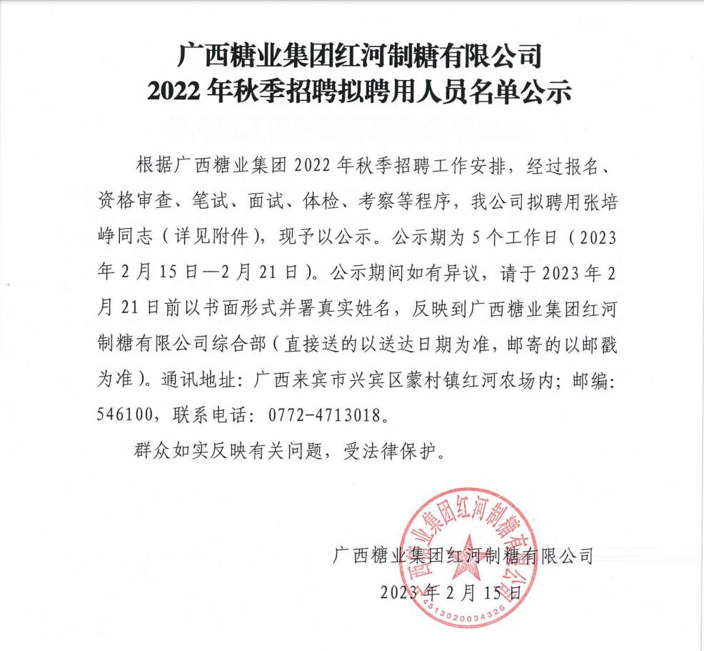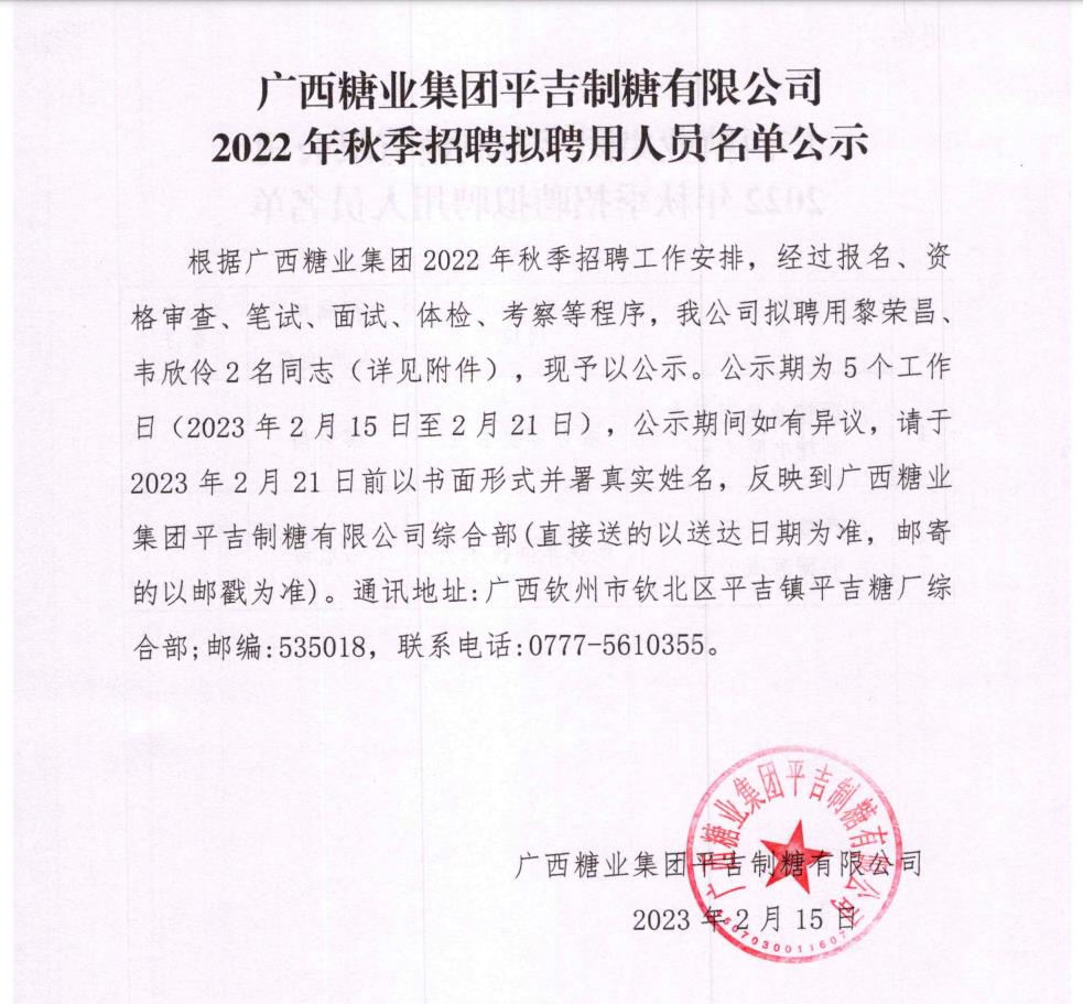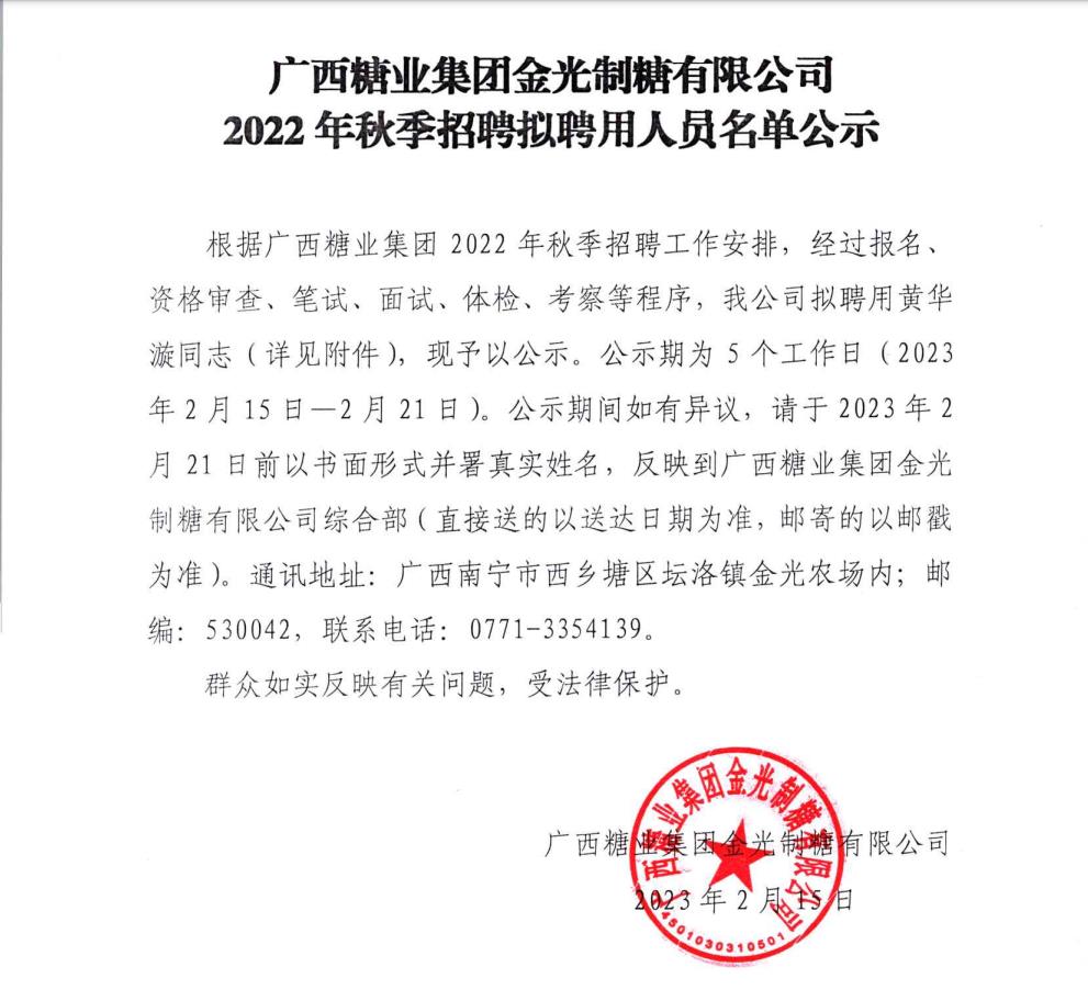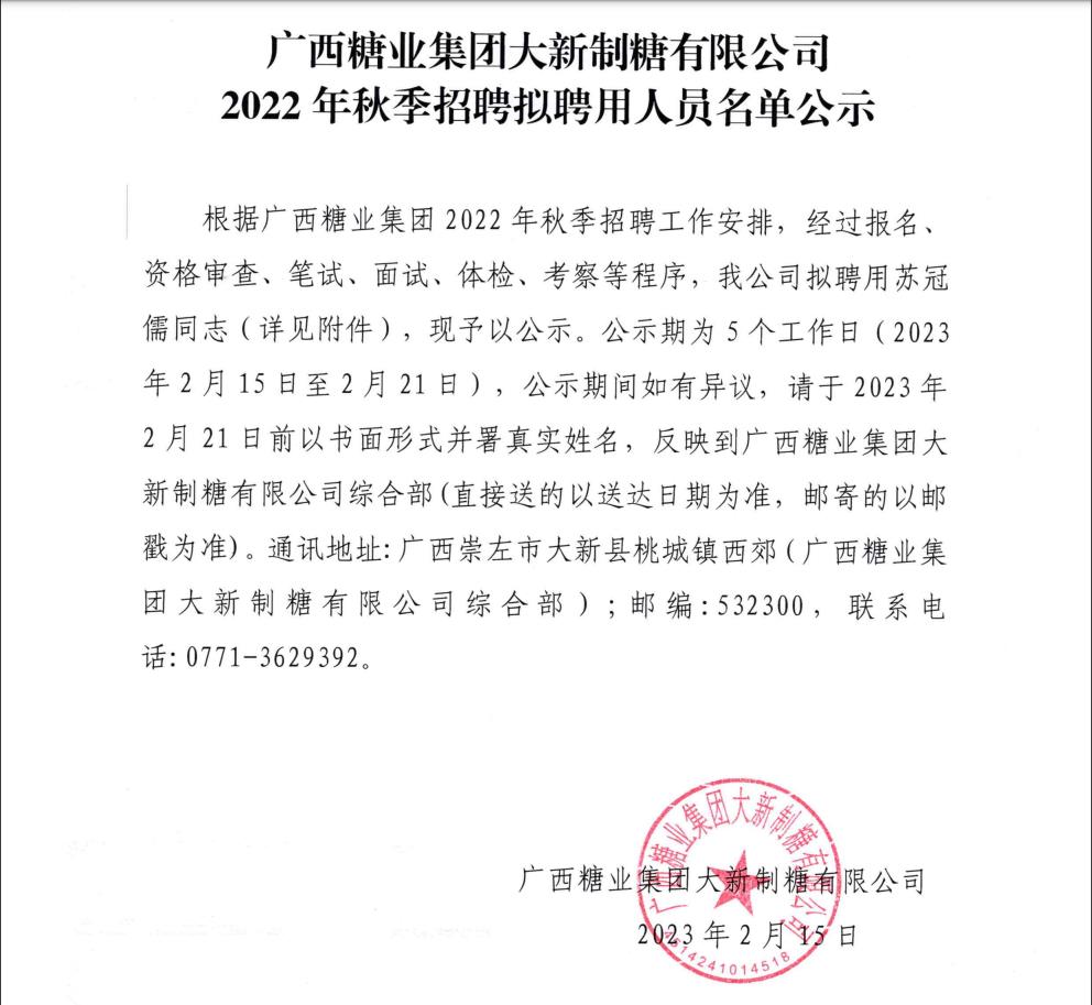 下一篇:广西糖业集团下属企业2022年秋季招聘第二批拟聘用人员名单公示
