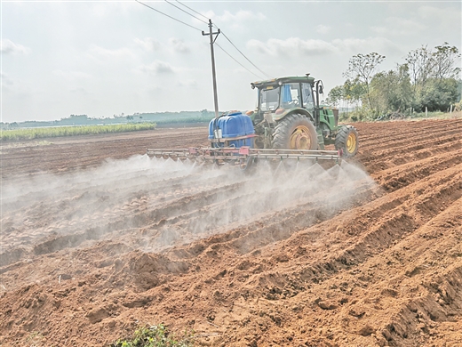 星星制糖公司蔗区施肥打药情景。陈 琳/摄