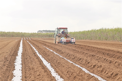 良圻制糖公司蔗区接纳机械化种植,加速春耕进度。 黄嘉丽/摄